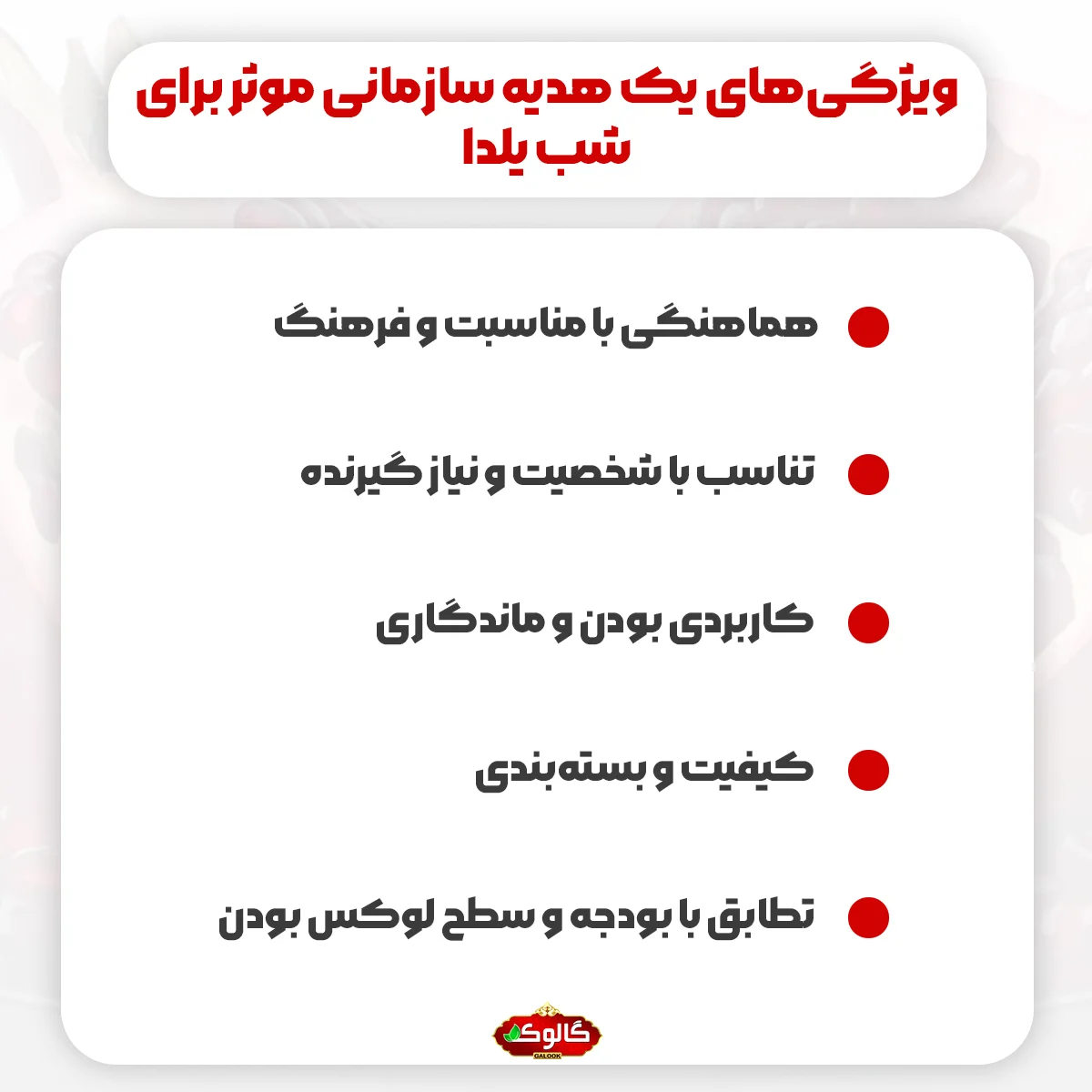 ویژگیهای پک هدیه سازمانی موثر برای شب یلدا