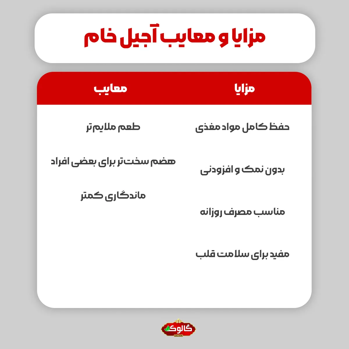 آجیل خام بهطور کلی مواد مغذی حساس به حرارت (مثل ویتامینها و آنتیاکسیدانها) بیشتری دارد، چون تحت حرارت زیاد قرار نگرفته است.