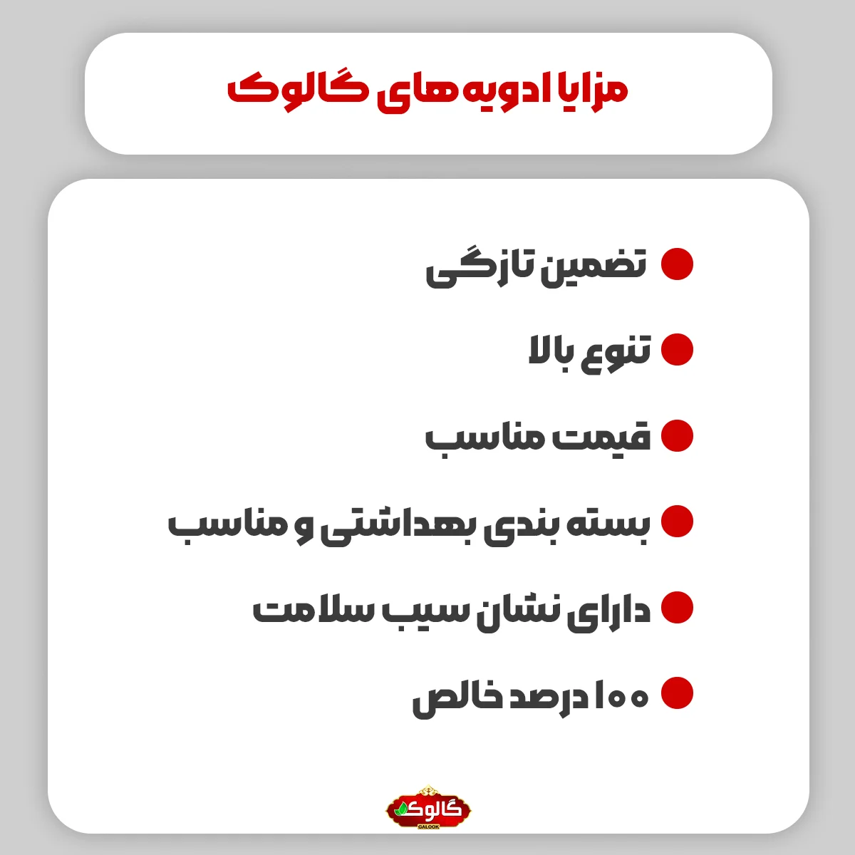 ادویههای طبیعی گالوک بدون افزودنی و مواد نگهدارنده هستند تا خواص آنها بهصورت کامل حفظ شود.
